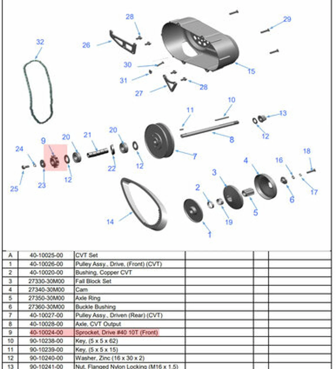 40-10024-00 – SPROCKET, (FRONT) DRIVE #40 10T (COMPATIBLE WITH PRO B212)