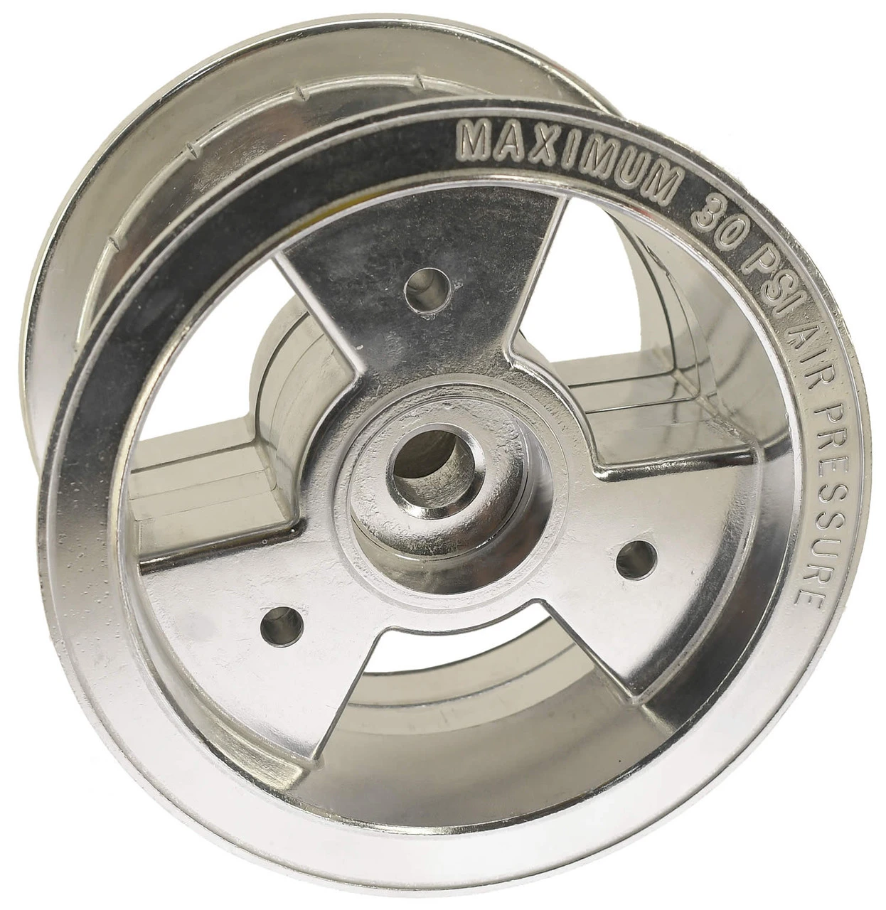 6″ Tri Star Aluminum Wheel, Wheel width inside of bead is 4″, Overall width is 4.5″,