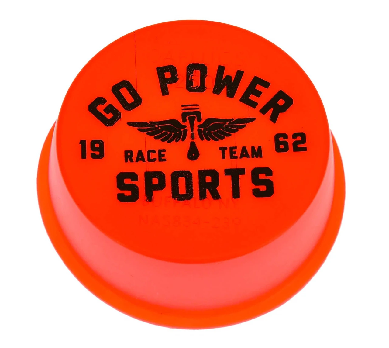 Red Plastic Air Filter Adapter Cap with our Piston Wing logo. This item is great for use on any engine running a K&N Style filter. Can be used when transporting or working on an engine to make sure no air or junk get inside. This cap will fit over our 2-7/16″ Air Filter Adapters and 2-7/16″ Velocity Stack.