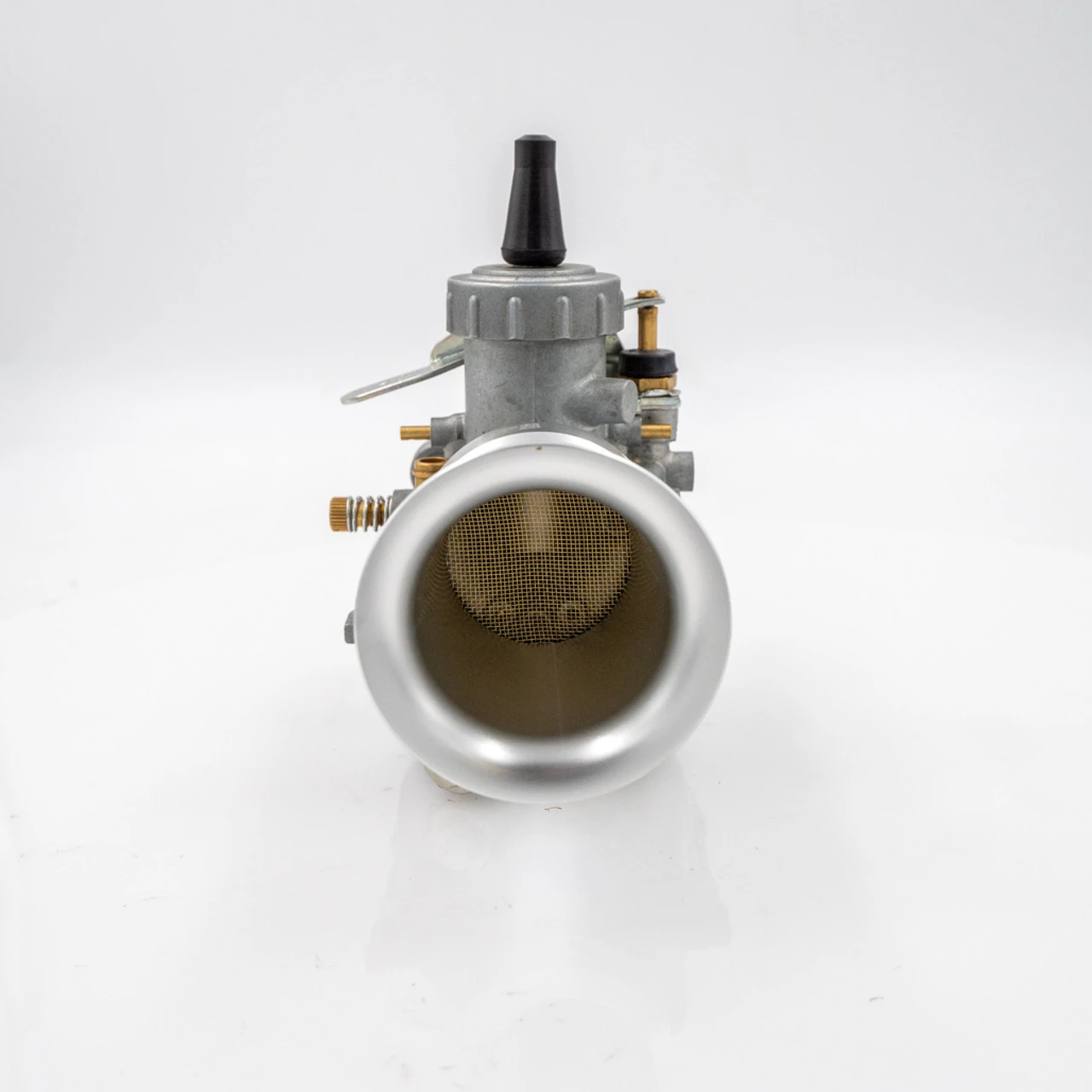 Velocity Stack mounts to the outside of a Mikuni style carburetor, taking place of the air filter. Â